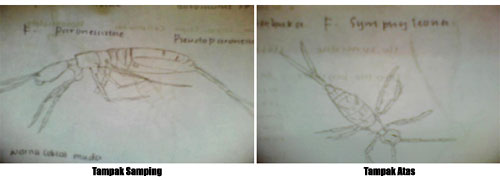 Colembolla yang ditemukan baik dari lahan bekas tambang timah maupun dari lahan perkebunan berasal dari Famili Isotomidae. Ciri ciri yang dimiliki oleh Colembolla tersebut, antara lain: tubuh kecil dan berwarna putih dengan garis longitudinal. Tidak bersayap dan antenna terdiri dari 4 ruas. Ruas tubuh nampak mampat dan berlekatan satu dengan yang lain. Abdomen dengan 7 segmen atau kurang, pada sisi ventral segmen abdomen ke-4 terdapat ekor (furkula) seperti pegas yang dapat digunakan untuk melompat. Bagian mulut agak panjang dan tersembunyi di dalam kepala (Borror, 1996).